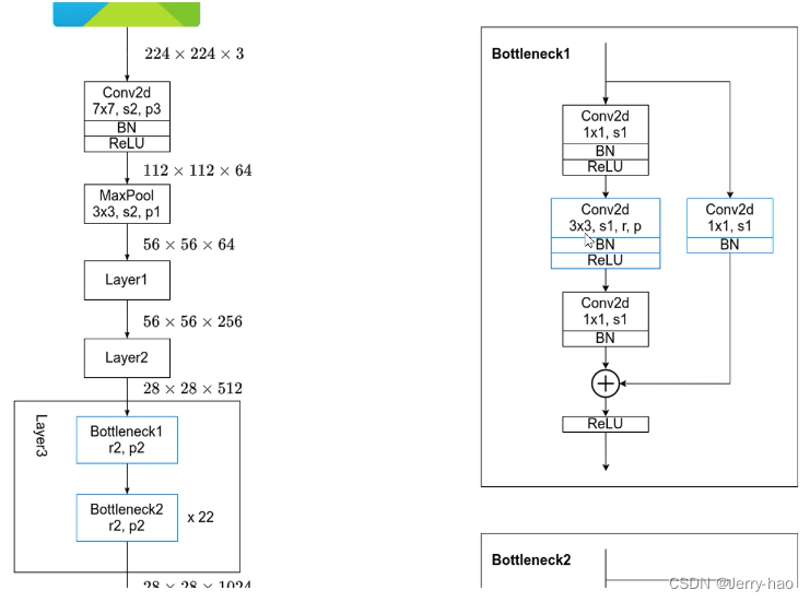 在Layer3 的Bottleneck1 中的第二个卷积变成了膨胀卷积。(上图右面蓝色部分)
