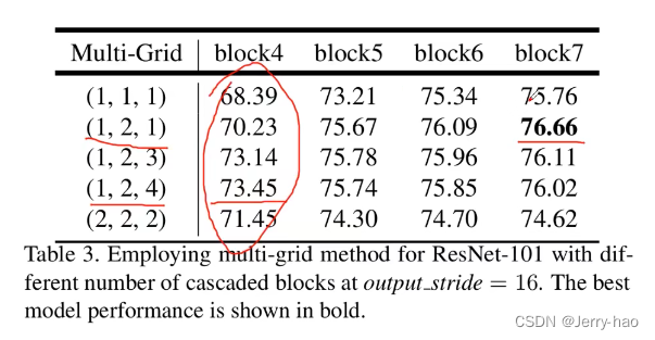Multi-Grid那一列是膨胀系数基底,当block4中膨胀系数是2的时候: