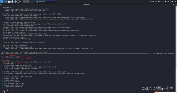 wpscan --url http://192.168.133.139/wordpress/ --enumerate u
