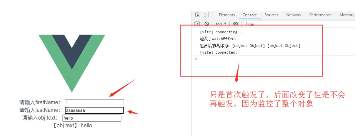 // 这里我们不使用firstName.value/lastName.value ,相当于是监控整个ref,对应第四点上面的结论