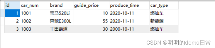 - Car car = new Car(null,"6666","丰田霸道",32.0,"2020-11-11","燃油车");