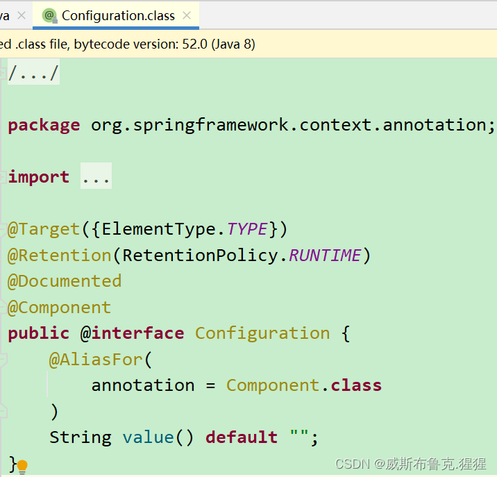 可以看到@Configuration的底层是@Component,但是两者又有不同