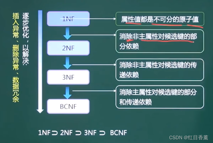 第三范式:没有非主属性的传递依赖候选键。