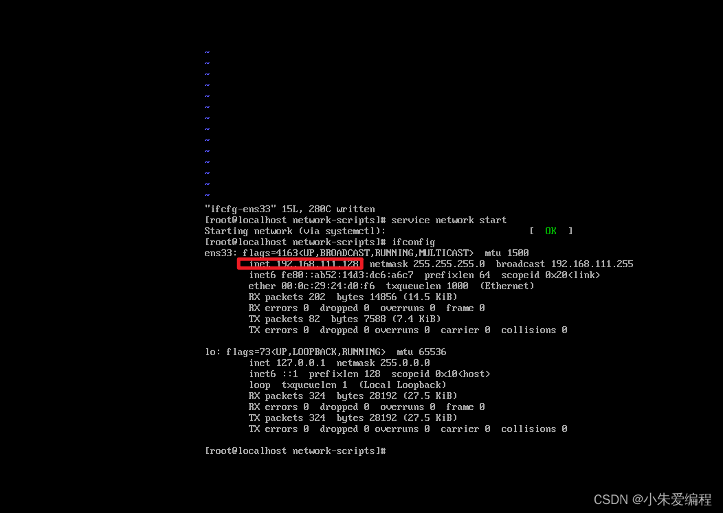 2)使用vi编辑ifcfg-ens33