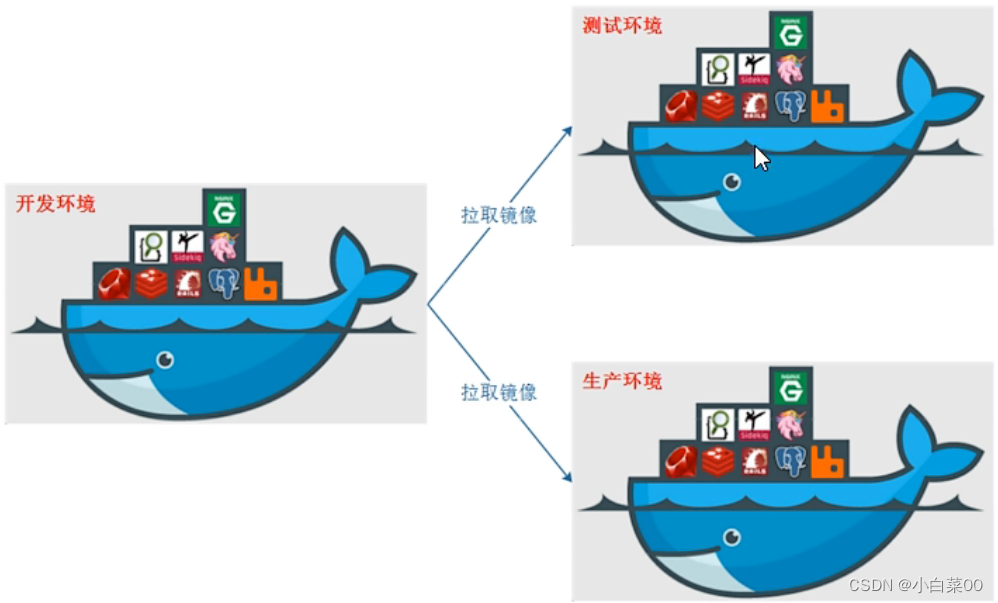 以前环境配置相当麻烦,换一台机器就要重来一次,费时费力;因此就有人想要从根本上解决问题——软件可以带环境安装(把原始环境一模一样的复制过来,这样开发人员利用docker可以消除协作编码时在自己的机器上可正常工作的问题)