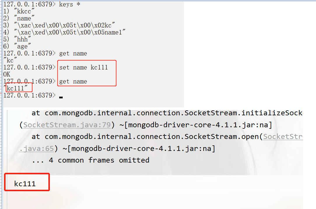 - System.out.println(ops.get("kc","a1"));