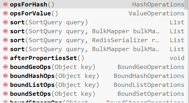 - HashOperations ops =redisTemplate.opsForHash();