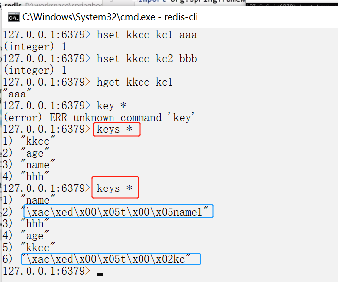 在使用RedisTemplate在库中都是以对象的形式,而在redis客服端中的操作是以字符串的形式