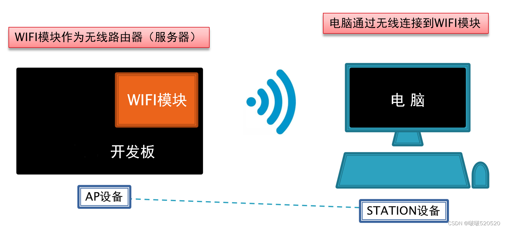 如果你需要做远程控制则选择的station模式,如果做像蓝牙一样的近距离控制则选择AP模式就可以了。