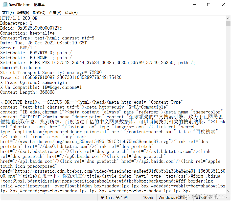 服务器返回的响应内容(上图中空行的下面都是正文,因为正文较多,没有全部截取).