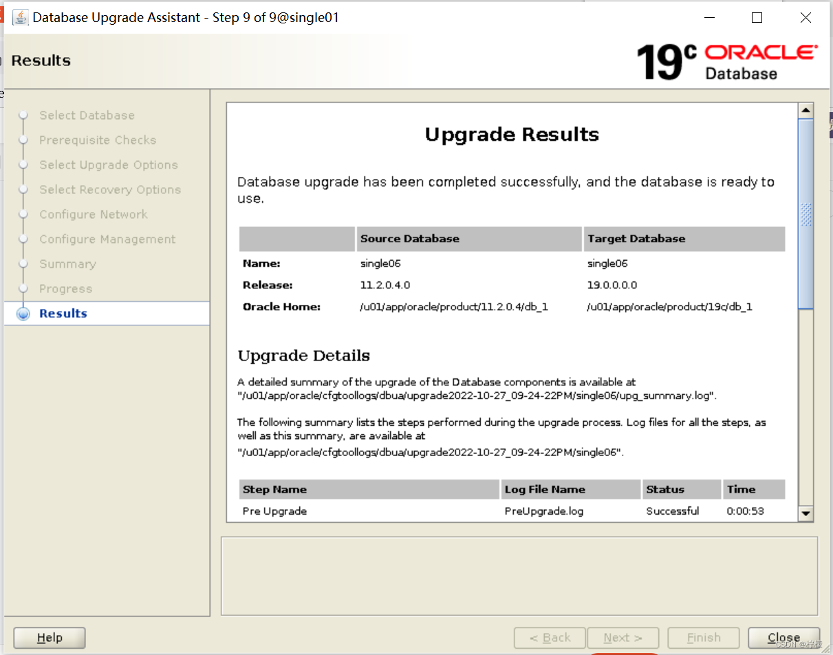 - [oracle@single01 single06]$ cat upg_summary.log