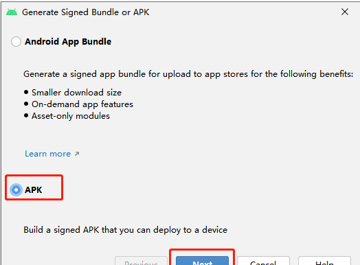 最后就可以点击Android Studio编辑器上方的build,点击Generate Signed Bundle / APK进行打包
