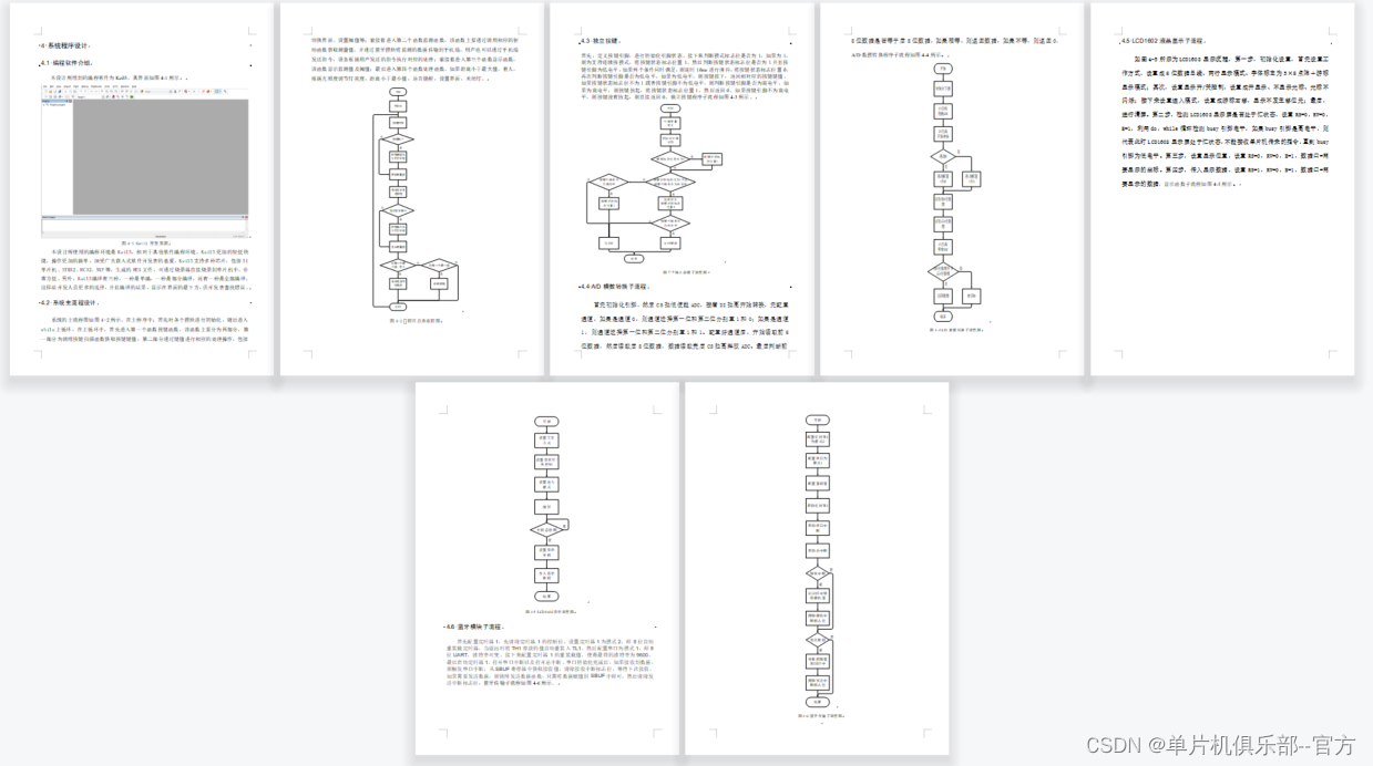 系统的主流程图如图所示。在主程序中:首先对各个模块进行初始化,随后进入while主循环,在主循环中,首先进入第一个函数按键函数,该函数主要分为两部分,第一部分为调用按键扫描函数获取按键键值,第二部分通过键值进行相应的处理操作,包括切换界面、设置阈值等;紧接着进入第二个函数监测函数,该函数主要通过调用相应的驱动函数获取测量值,并通过蓝牙模块将监测的数据传输到手机端,用户也可以通过手机端发送指令,设备根据用户发送的指令执行对应的处理;紧接着进入第三个函数显示函数,该函数显示监测值及阈值;最后进入第四个函数处理函数,如果距离小于最大值,有人,根据光照度调节灯亮度,距离小于最小值,语音提醒,设置界面,关闭灯。
