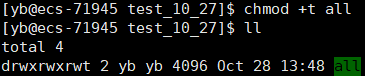 可以看到,目录的其他用户的可执行权限位就变为了t,表示该目录有粘滞位