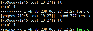 也可对所有的用户作同样的修改,如:chmod a+r test.txt