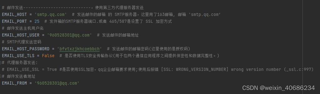 邮件配置;邮箱注册账号会用到.在项目的setting.py文件中