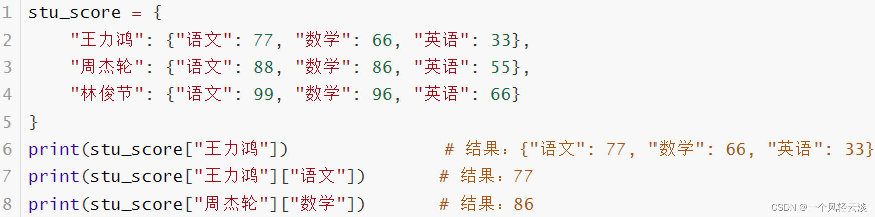 现在需要将其通过Python录入至程序中,并可以通过学生姓名检索学生的成绩。