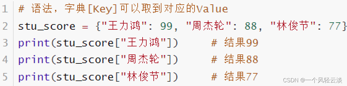 | 1 | 字典[Key] | 获取指定Key对应的Value值 |