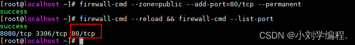 firewall-cmd --zone=public --add-port=80/tcp --permanent