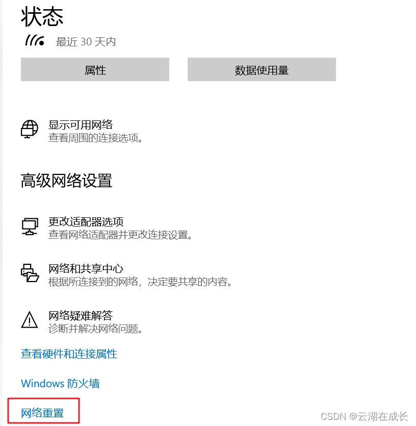 (2)点击“网络重置”
