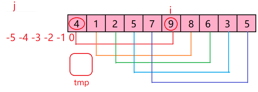 将 i 下标的值放到定义的 tmp 中,然后与 j下标 的值比较。