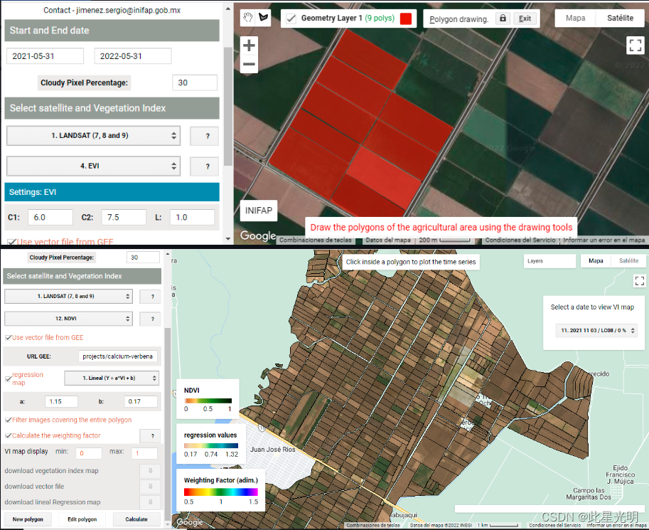 还提供了一个网络应用程序(https://inifapcenidraspa.users.earthengine.app/view/vical)。