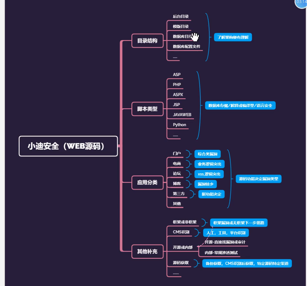 关注应用分类及脚本类型估摸出可能存在的漏洞(其中框架类例外),在获取源码后可进行本地安全测试或代码审计,也可以分析其目录工作原理(数据库备份,bak 文件等),未获取到的源码采用各种方法想办法获取!