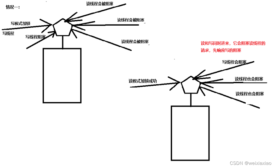 1.读写锁是“写模式加锁”成功时, 其他线程尝加锁都会被阻塞。