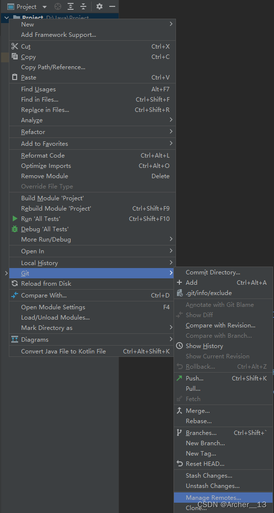 右键点击项目 ---> Git