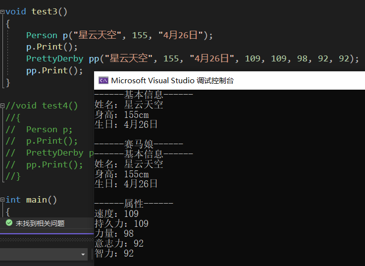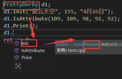 - class PrettyDerby : public Person // 公有继承 基类Person,派生类PrettyDerby