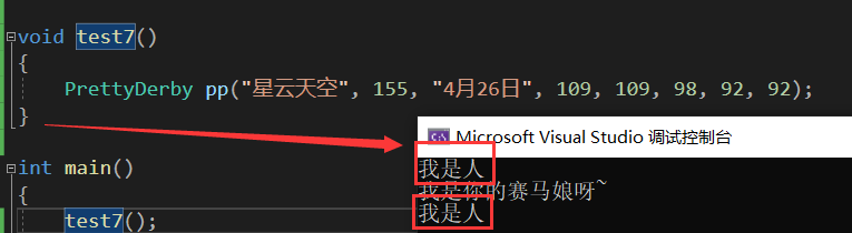 可以看到,“我是人”输出了两次,证明了编译器无论你是否显示调用基类析构函数都会在派生类的析构函数末尾调用基类的析构函数: