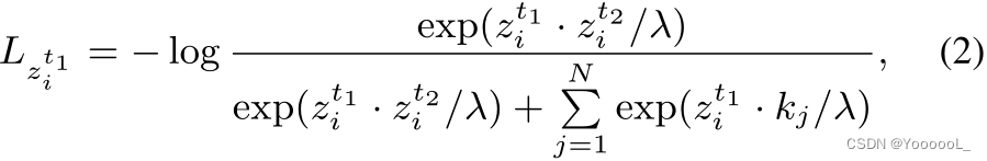 MoCo-v2 框架中使用的对比损失函数是 InfoNCE [26],对于给定的数据样本定义如下: