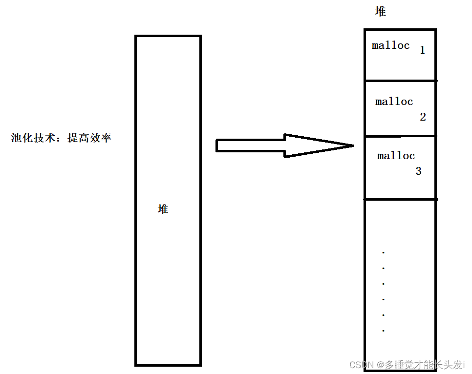 我们一般无论是malloc还是new都是去堆上申请空间,类似于以前大家要用水都要去河边打水。而内存池就相当于我们自己在家里做一个蓄水池(malloc 一块空间),用水就可以直接使用(定向new)。这样会提高效率,我们不需要去挤着都去河边打水。类似于各项需要向堆申请空间的工作都被分配给一定空间,使用时各自去使用这么一块空间,每一块空间就是一个内存池供不同的工作使用,提高了工作效率。