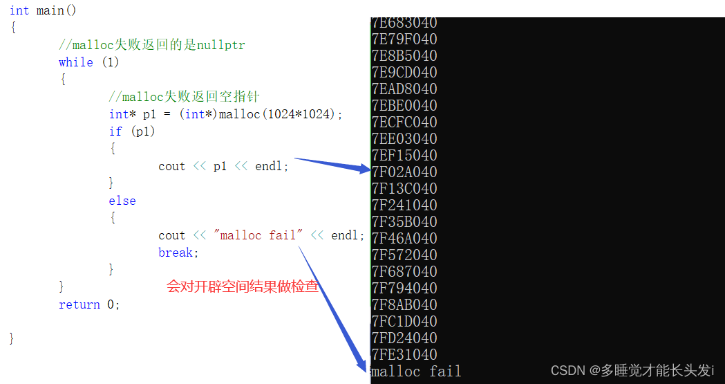 如果开辟失败,在C语言阶段会返回一个nullptr(空指针),而C++则会抛出异常。