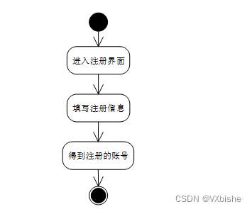 用户管理针对所有用户和管理员。未注册用户点击注册,进入注册页面填写新用户信息,得到自定义生成账号后,注册完成。未注册用户注册的活动图如下图所示。