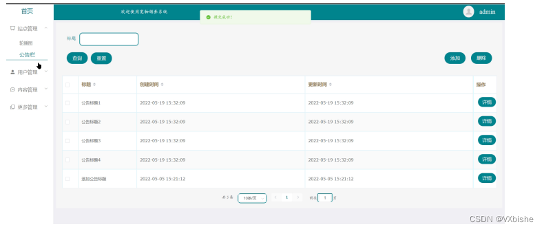 前端部分:前端框架采用了比较流行的渐进式JavaScript框架Vue.js。使用Vue-Router和Vuex实现动态路由和全局状态管理,Ajax实现前后端通信,Element UI组件库使页面快速成型,项目前端通过栅格布局实现响应式,可适应PC端、平板端、手机端等不同屏幕大小尺寸的完美布局展示。