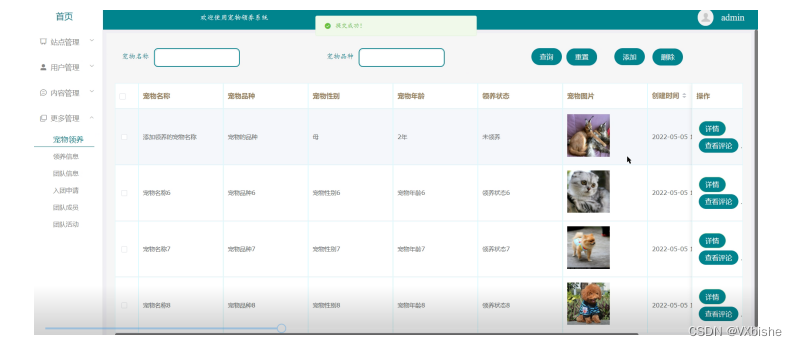The pet adoption system is based on the browser and server architecture platform, developed with cross platform Java language, using SSM framework for logic control, MySQL database to store data, and finally Tomcat server to complete the release. The system can run in multiple environments.