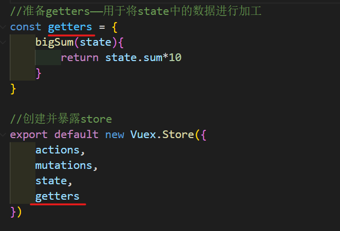 使用场景:当state中的数据需要经过加工后再使用时,再getters中进行加工。