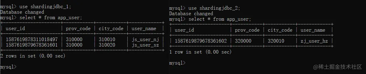 根据上面的案例可以确定出需要针对于江苏省的数据库shardingjdbc_1和浙江省的数据库shardingjdbc_2,以及对应的数据表。