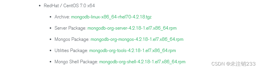 自行选择MongoDB版本号,根据自己系统版本进行下载,我的系统为Centos7,故下载此处的包