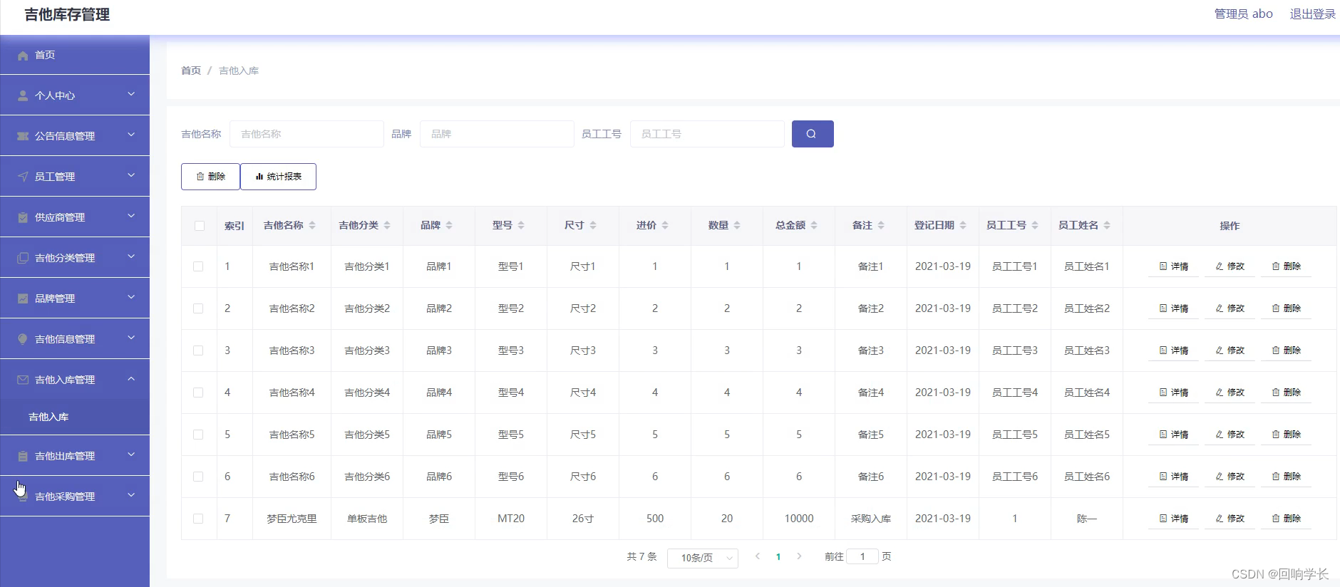 java计算机毕业设计吉他库存管理(附源码、数据库)