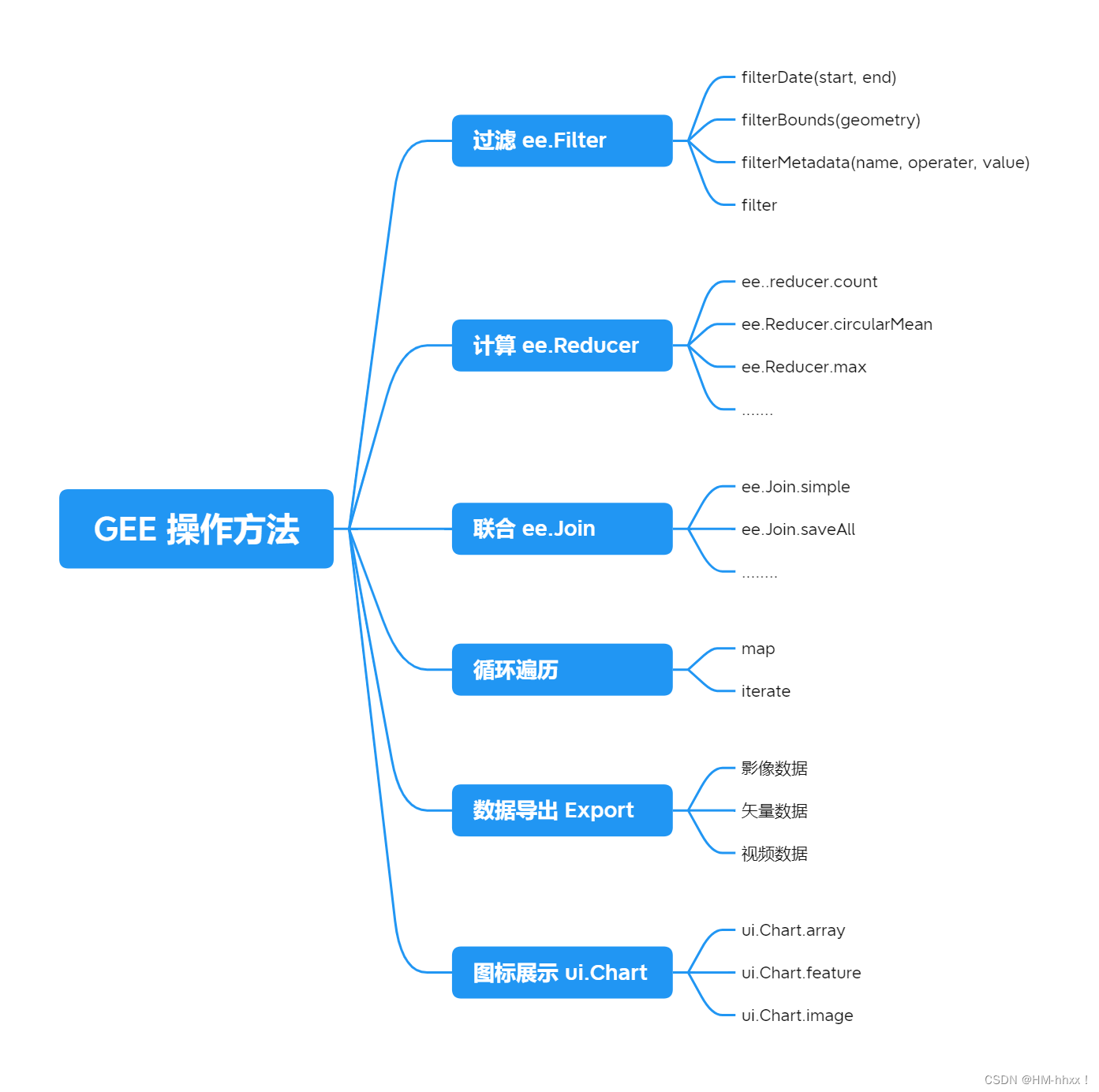 ee.Filter.calendarRange | 根据指定的日期格式筛选数据。 | start:开始日期 end:结束日期 field:日期格式,如year、month、hour、minute、day_of_year、day_of_month、day_of_week..... |