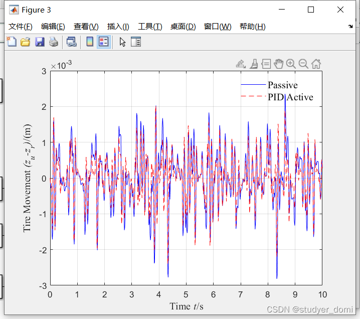 ylabel('Tire Movement {\it(z_u-z_r)}/(m)','FontSize',12,'FontName','Times New Roman')