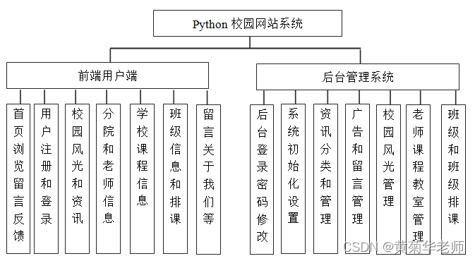 目的:本课题主要目标是设计并能够实现一个基于python的校园网站,整体网站系统基于B/S架构,技术上使用基于python的Django框架来实现;通过后台添加设置校园信息、录入和管理校园资讯、校园风光、学校分院信息、老师信息、课程信息、教学楼和教室信息、班级和班级排课信息等;广告师生通过登陆网站地址,了解校园信息、校园风光、查看资讯、资讯收藏、资讯评论、查看学校分院信息、老师信息、课程信息、班级和排课信息、给管理员留言等。