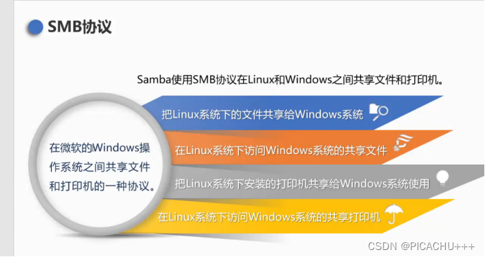 SAMBA最先在Linux和Windows两个平台之间架起了一座桥梁,并且提供不同系统间的共享服务,还能拥有强大的打印服务功能。SAMBA是一组软件包,依赖于SMB(消息块协议)