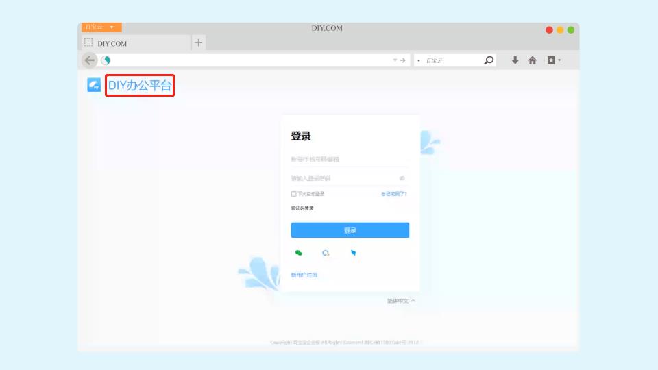 在办公系统登录界面,使用企业自己的logo图标,不带有第三方服务商信息,利于提高员工对于公司品牌的认同感;