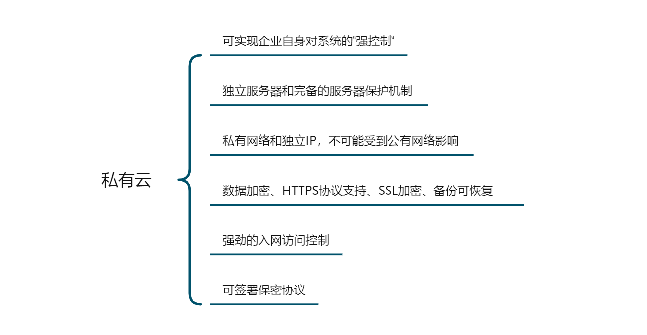 私有云因为其有单独的服务器支持(大多是阿里云)和完备的服务器保护机制,拥有独立的私有网络和独立IP,且可实现IP地址的保密,不会受到公有网络影响和攻击,单论安全性能一定能满足所有类型企业的需要。
