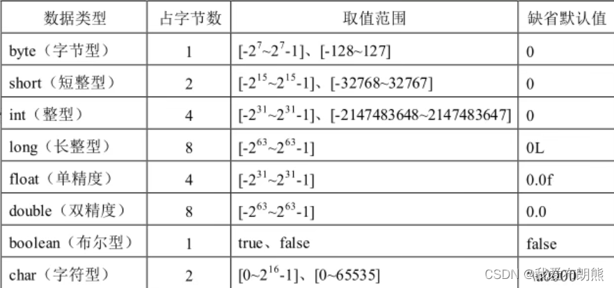 byte占用1个字节、short占用2个字节、int占用4个字节、long占用8个字节