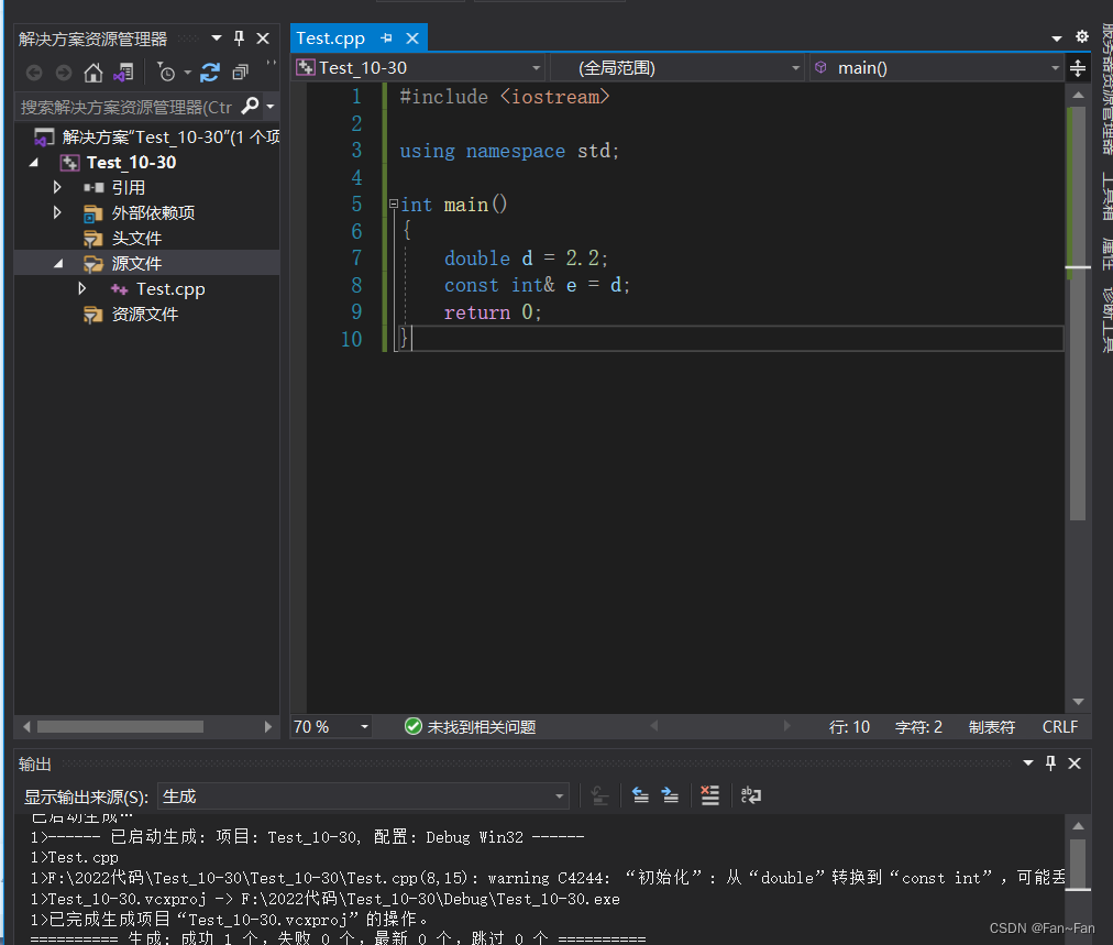 当然不是,此时的e是对临时变量的引用,是临时变量的别名我们可以通过编译来验证: