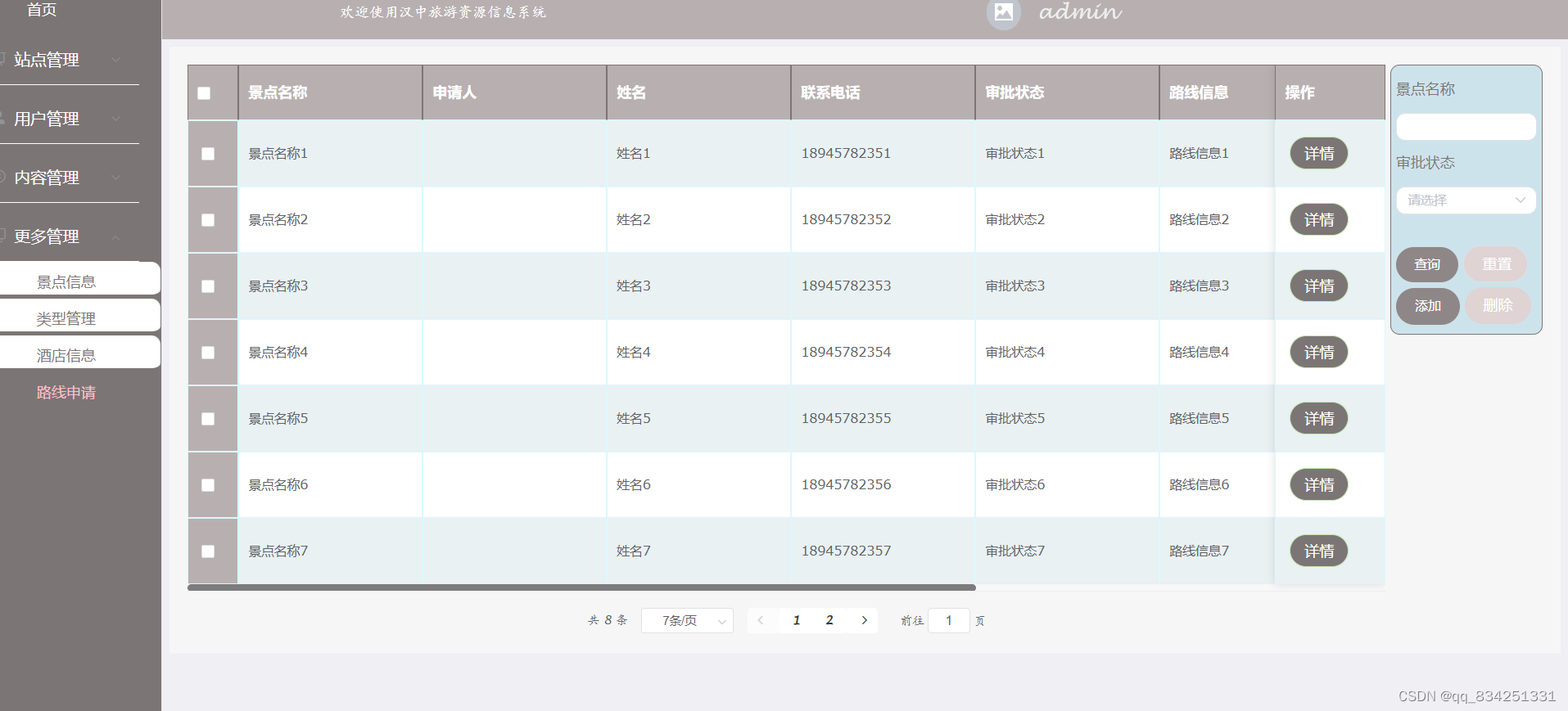 景点信息管理:对景点信息进行详情,删除、修改信息。